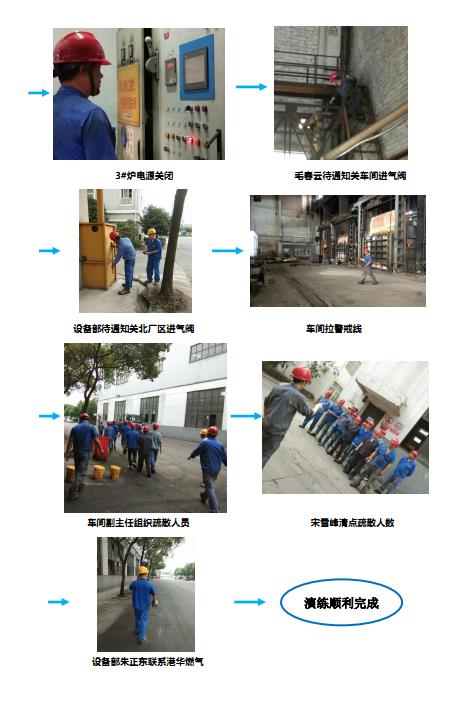 演練開始前,生產副總宋亞東進行活動前動員,對活動過程進行講解,指出活動的主旨在于提高全體員工的安全意識和應急救援能力。演練現場,氣體探測儀發現了天然氣管道氣體泄漏的3#加熱爐,車間安全員、車間主任接到信息后,迅速切斷相關電源和氣體泄漏源,疏散組組長有條不絮地引導人員疏散,1分鐘內疏散至緊急集合點,車間員工全部安全撤離,演練達到了預期的效果。