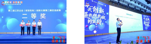 2021年7月13日,由江蘇省企業研發機構促進會、江蘇省科學技術情報研究所主辦、張家港市科學技術局承辦的第二屆江蘇企業(研發機構)創新大賽第二賽區選拔賽在我市國貿酒店國泰廳舉行。公司“海陸超人HDJC-i5000大型環鍛件全自動超聲檢測裝備”項目經過激烈的角逐,在本賽區21家單位路演比賽環節脫穎而出,以優異的成績榮獲二等獎。