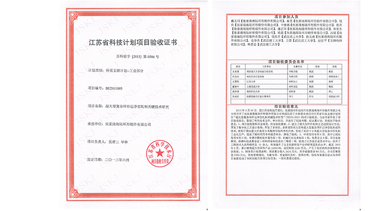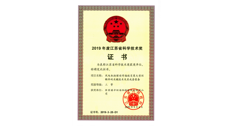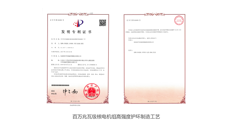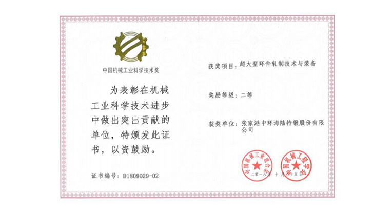中環海陸憑借長期技術研發和強大的技術創新能力,在工業金屬鍛件領域取得了重大創新與成果,榮獲了國家科技進步獎二等獎1項、中國機械工業科學技術進步二等獎1項、中國優秀專利獎2項、省科技進步三等獎2項。承擔國家火炬計劃項目2項,省重點研發項目3項。主導起草行業標準2項,其中《風塔法蘭大型環形鍛件技術條件》已發布實施。現有授權專利76項,其中 發明 專利42項,軟件著作權2項。